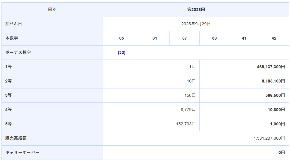 ロト6 第2038回
